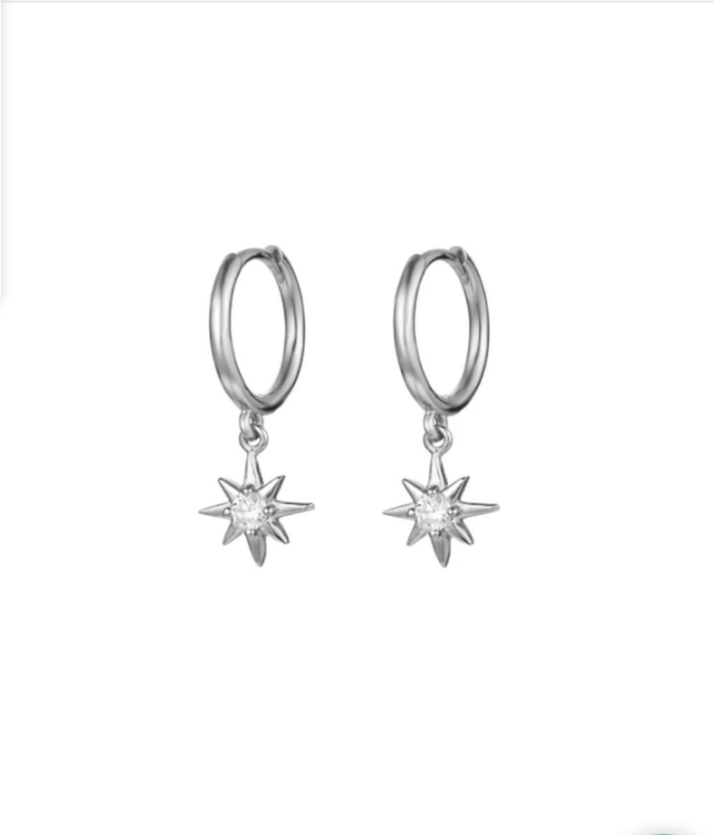 Pendientes de aro de estrella Plateados